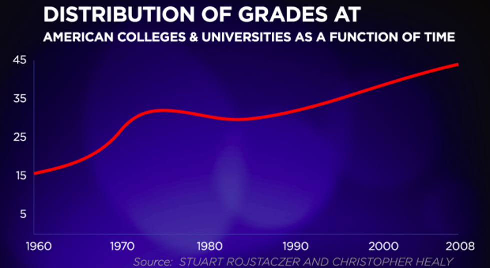 According to his research, our 1.1 trillion dollars in college debt is sure buying some awesome grades at some high brand schools.
