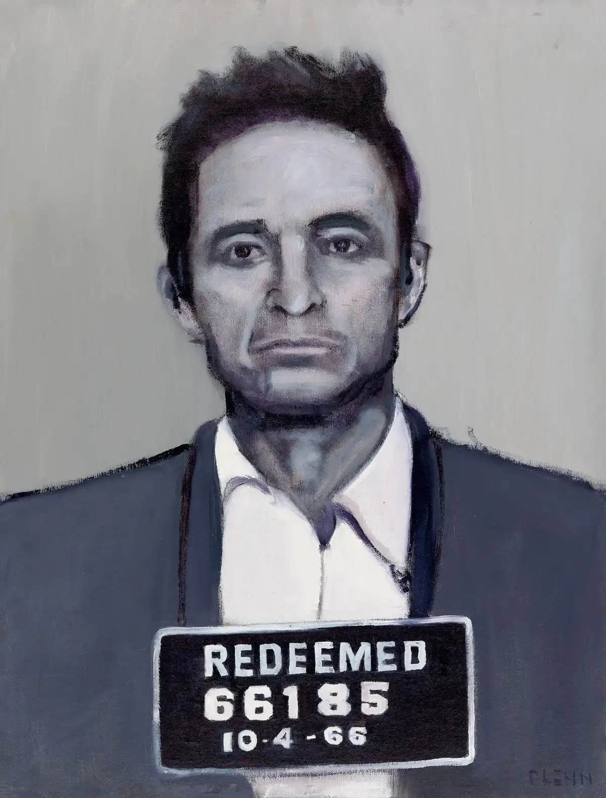 This is a portrait of Johnny Cash’s mug shot when he was arrested on charges of cocaine possession. Many say this was Johnny Cash’s lowest point, but in reality, it was the beginning of the rest of his life, his new life in Christ.