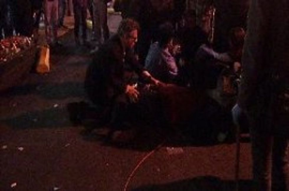 "There's one woman who is part of the Occupy movement who grabs his head as he starts to come down to the ground, grabs his head and cushions his head so it doesn't slam onto the street. Nobody else does anything. Craig, who's with me, unbeknownst to me, goes and rushes in and holds the guy's leg down. The guy ‑‑ the video stops almost immediately after this guy goes down because my other guy, Jeremy, he stops the video and he goes and he grabs the other leg of the guy to try to help him. They're loving him."