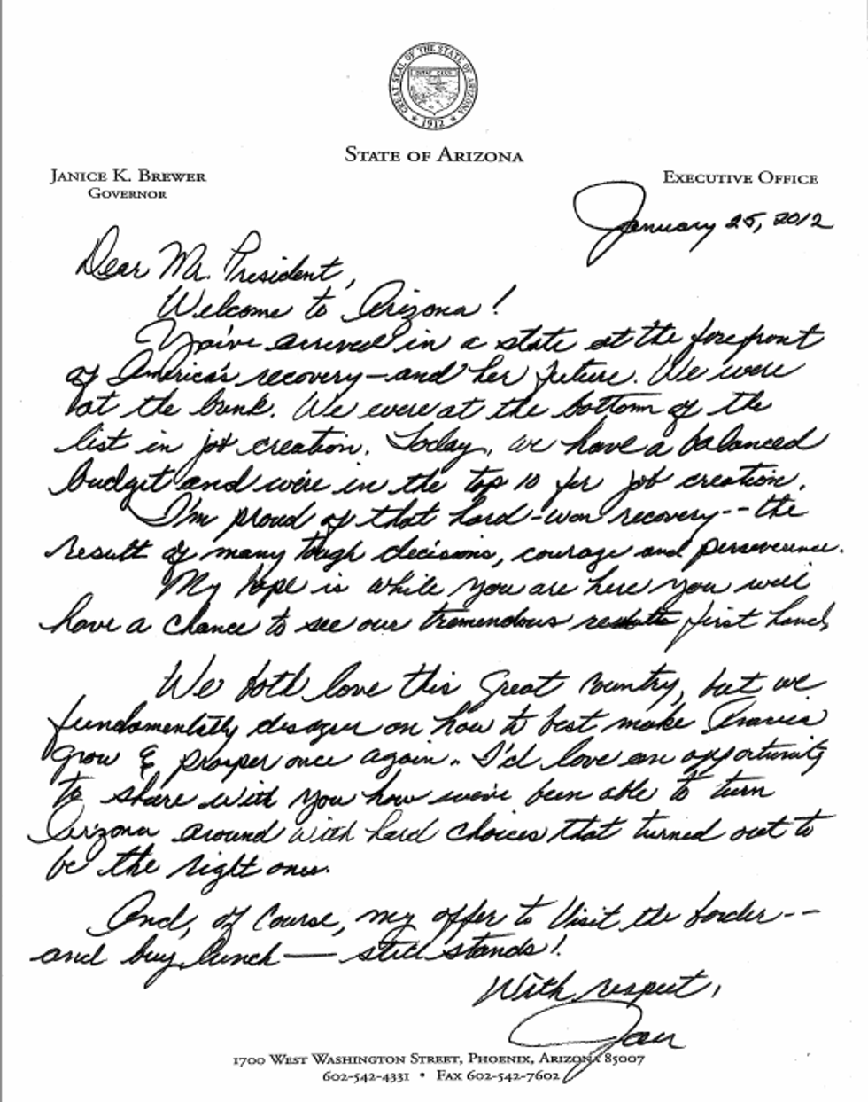 Read Arizona Governor Jan Brewer's letter to President Obama