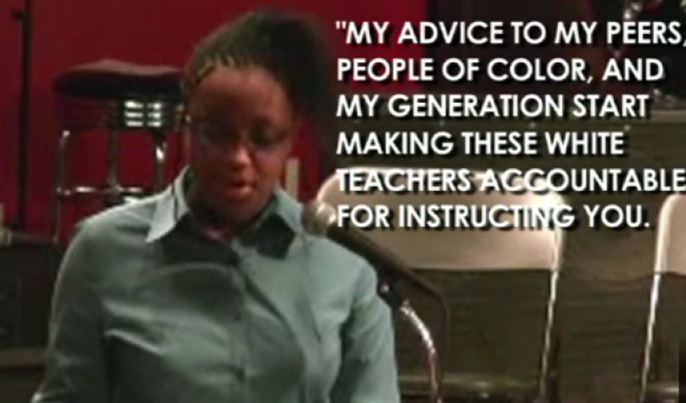 “My advice to my peers, people of color, and my generation, start making these white teachers accountable for instructing you. They tooled this profession, they brag about their credentials, they brag about their tenure, so if you have so much experience then find a more productive way to teach the so called “unteachable”.”