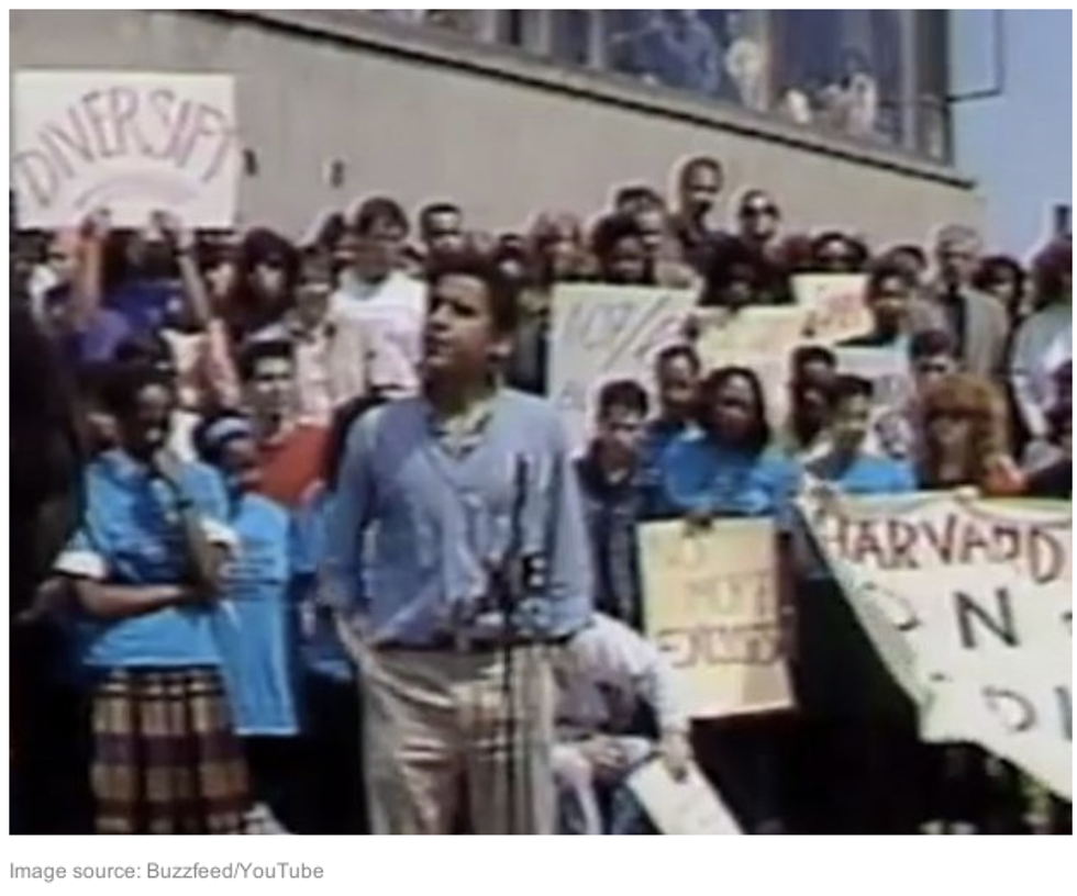 The video, which Kaczynski says was “licensed from a Boston television station,” shows a young Barack Obama leading a protest at Harvard Law School on behalf of Prof. Derrick Bell, a radical academic tied to Jeremiah Wright–about whom we will be releasing significant information in the coming hours.