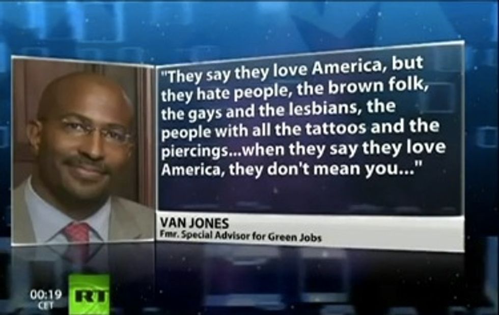 Van Jones is literally all over the place after being out of the spotlight for a few years after he unceremoniously resigned from the White House after Glenn exposed his radical, communist past. And while he is doing his best to put up a squeaky-clean image in front of the media, there are times when his radical philosophy shines through. Take, for example, his appearance on Russia Today where Jones claimed that libertarians "adopt an extreme ideology that would spit in the face of Dr. King." Really media? It takes Russia Today to expose this guy's radical thoughts?