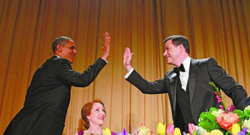 “Mr. President, you remember, you remember when the country rallied around you in hopes of a better tomorrow? That was hilarious. That was your best one yet,” Kimmel said to open his act. “But honestly, it's a thrill for me to be here with the President; a man who I think has done his best to guide us through some very difficult times and paid a heavy price for it. You know there's a term for guys like President Obama, probably not two terms, but... there is.”