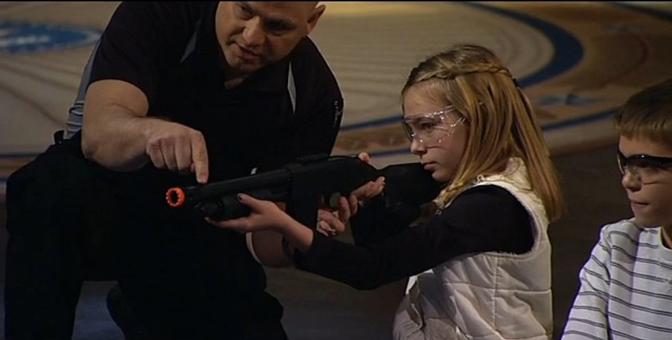 After going through the various types of guns on set (there were a lot), Glenn and guest Paul Michael showed a group of kids on set how to shoot a gun. Why? So they could get acquainted with basic safety and see guns without the irrational fear that has been drummed up by politicians, the media, and teachers.