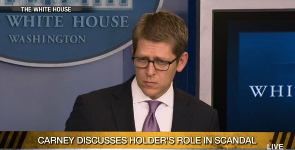 The White House Press Corps actually took Jay Carney to task over the ridiculous lies being told by Eric Holder. Carney was pressed today because we now know Holder was lying through his teeth about the Rosen scandal - and he actually just gave up trying to defend Holder. Watch Carney give up as it happened live during the Pat & Stu show.