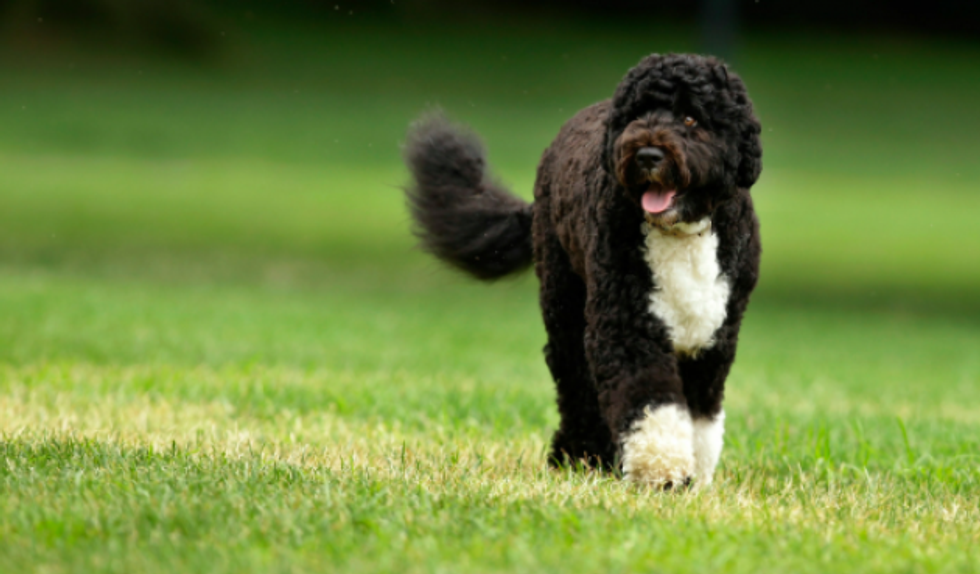 Bo, the president's Portuguese Water Dog, arrived separately on one of two MV-22 Ospreys, a hybrid aircraft which takes off like a helicopter but flies like a plane.