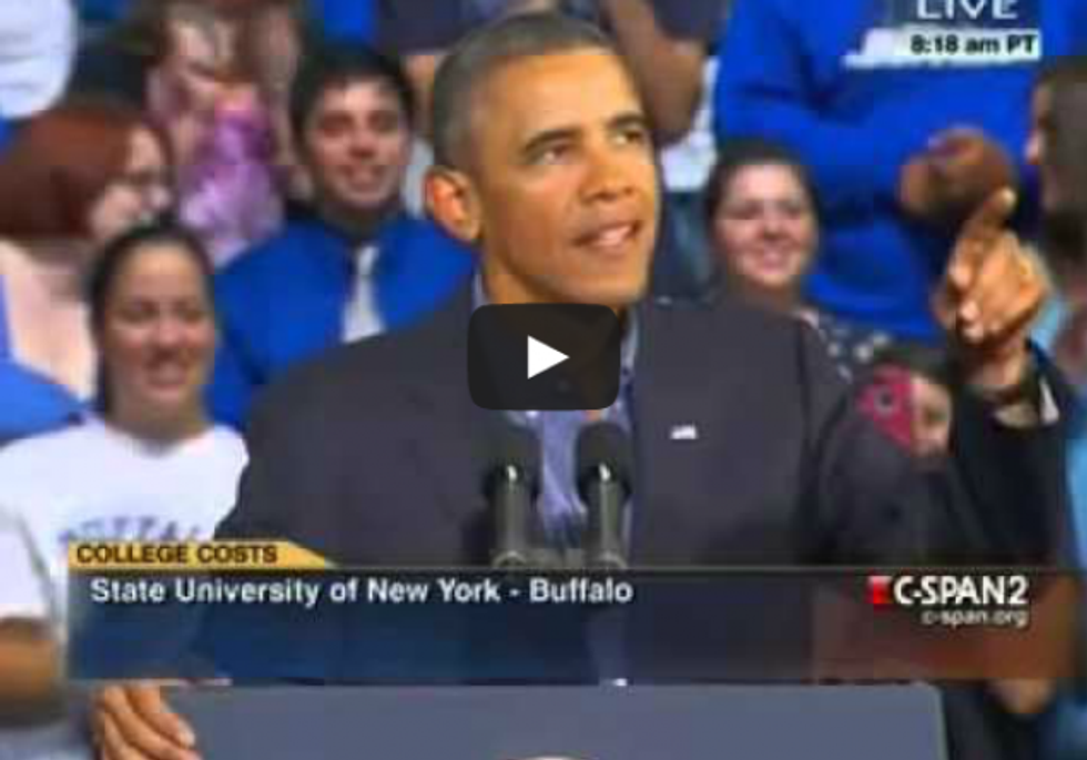 For all the talk of how brilliant an orator President Obama is, he has proven time and time again he isn't very good at ad-libbing. As soon as his teleprompter goes away, he becomes incapable of speaking coherently. It happened again yesterday, during an appearance at the State University of New York – Buffalo.