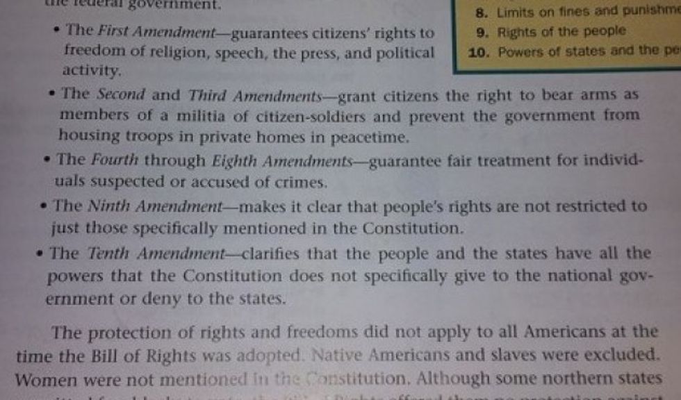 A high school in Simponville, S.C. is using a textbook that combines the Second and Third Amendment into one singular sentence: