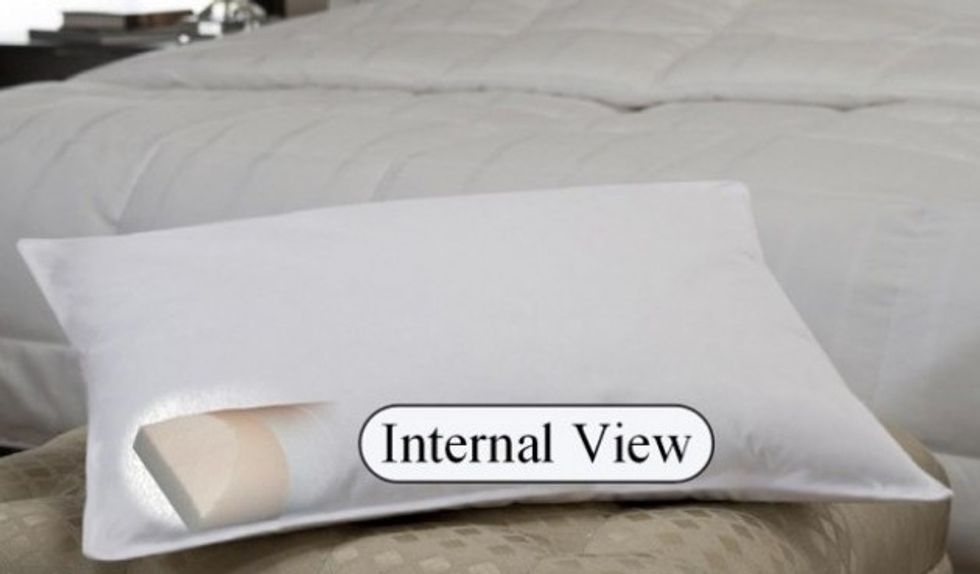 The PF Pillow features two comfort zones: Poly-Flex neck support and soft, premium duck feather interior.
