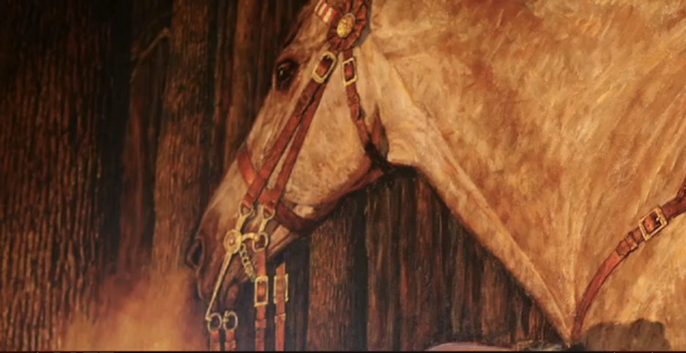 Right over here in my office is the original painting of The Prayer at Valley Forge done by Arnold Friberg. This is the painting that he painted before the famous one that was hanging on the wall of Mount Vernon. He wanted to paint it and get the color right, and then he painted off of this one. It wasn’t even known to exist until about a year and a half ago. I’m lucky enough to be its caretaker for a while.