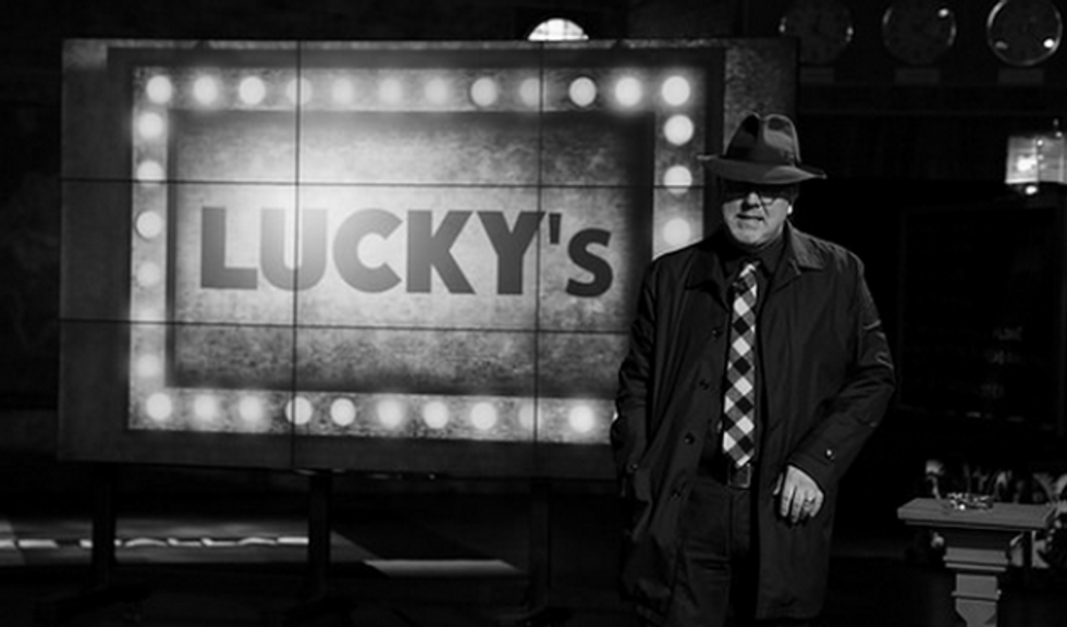 In the clip, Glenn throws on a trench coat and a fedora to tell the story of Mr. Lucky, a desperate casino owner whose establishment had long since seen better days.