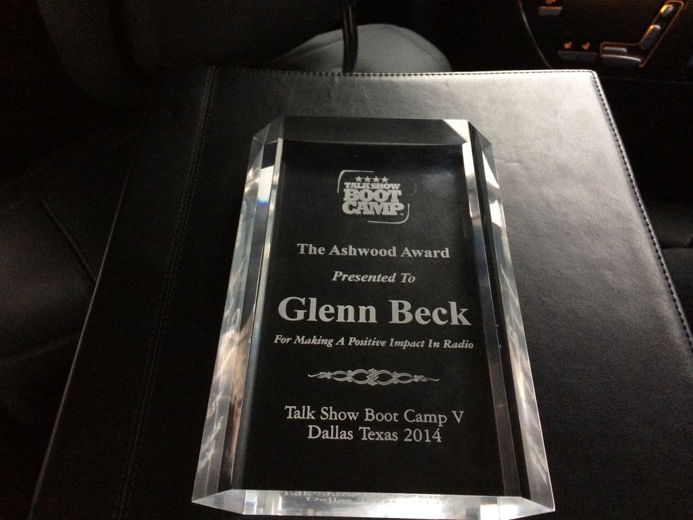 On Friday afternoon, Glenn was asked to speak at Talk Show Boot Camp, a gathering of some of the biggest names in the talk radio industry. Glenn was asked to speak, and he shared lessons gained from his years as a broadcaster. He spoke about the importance of connecting with the audience, and the need for people to be passionate and honest when dealing with every aspect of radio, from content to advertising. Following his speech, Glenn received an unexpected surprise: he was presented with the Andrew Ashwood Award for making a positive impact in radio.
