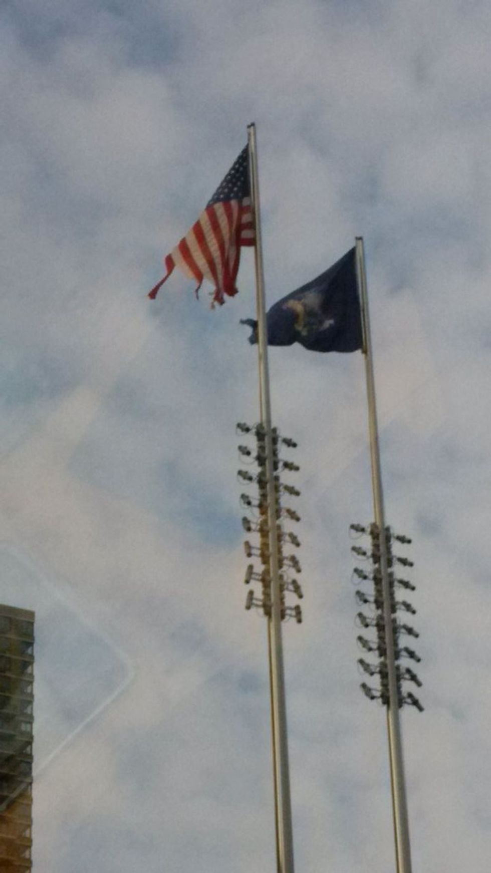 Back in February 2011, Glenn posted a picture on this very website of the flag that flies outside of Lincoln Center in New York City. At the time, Glenn quipped that he had "seen the original Star‑Spangled Banner" and that flag "is in better condition" than the one flying high over Manhattan. Fast forward three years, and Glenn found himself passing Lincoln Center again this morning, and he couldn't help but notice the condition of the flag flying outside of it hasn't changed one bit: