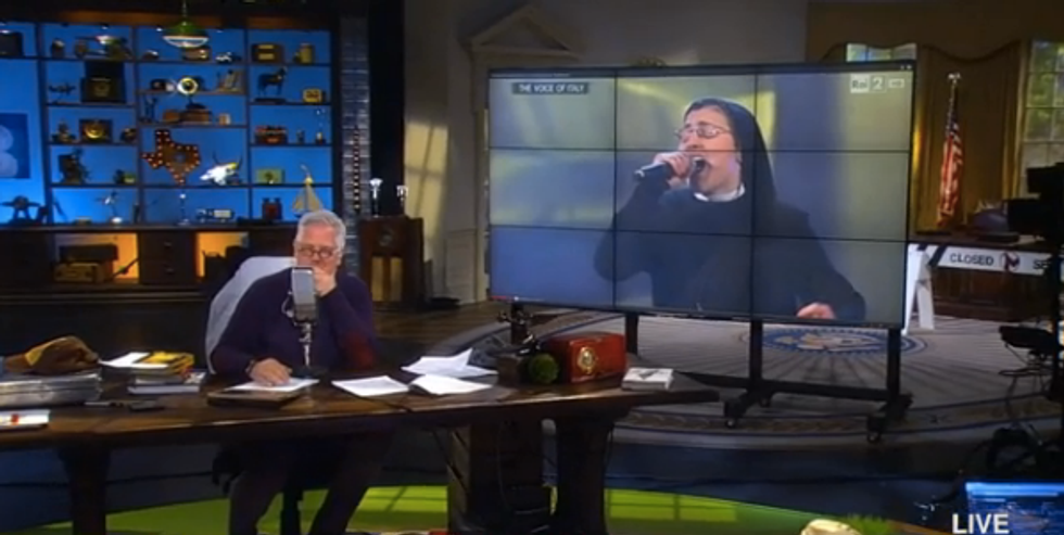 “There are a lot of things going on. The whole world is burning down. But we wanted to show you something that would take your mind off of that,” Glenn said on radio this morning. “This is The Voice of Italy, and the judges – when the chairs turn around, they couldn't believe who was singing. And when you see the video, it's as shocking as… Susan Boyle. This woman is rocking the house.”