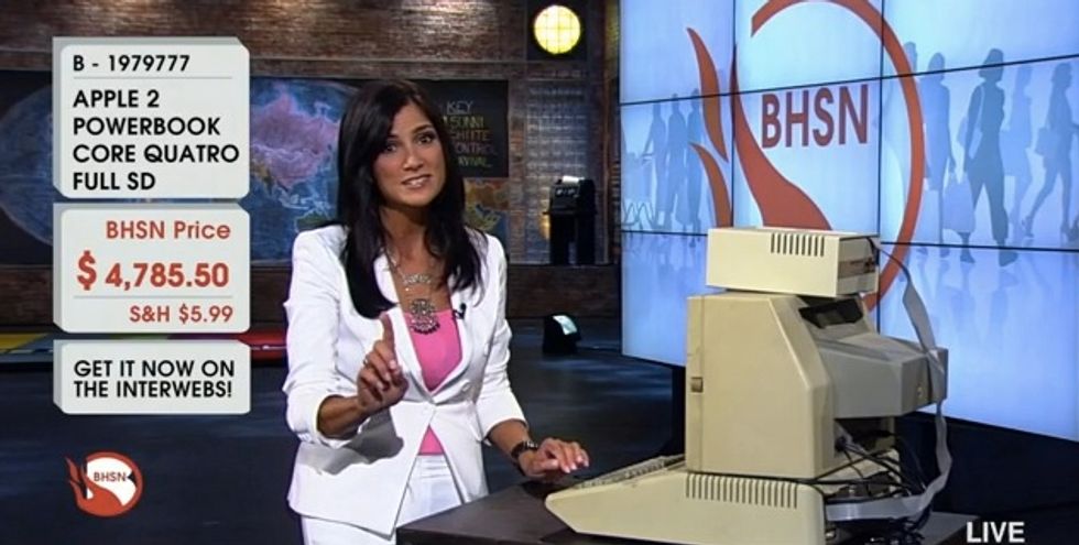 She then proceeded to head over to an old school computer and, mimicking a host on QVC, demonstrated what Reid thinks it must be like when people try to buy Obamacare on "the internets".