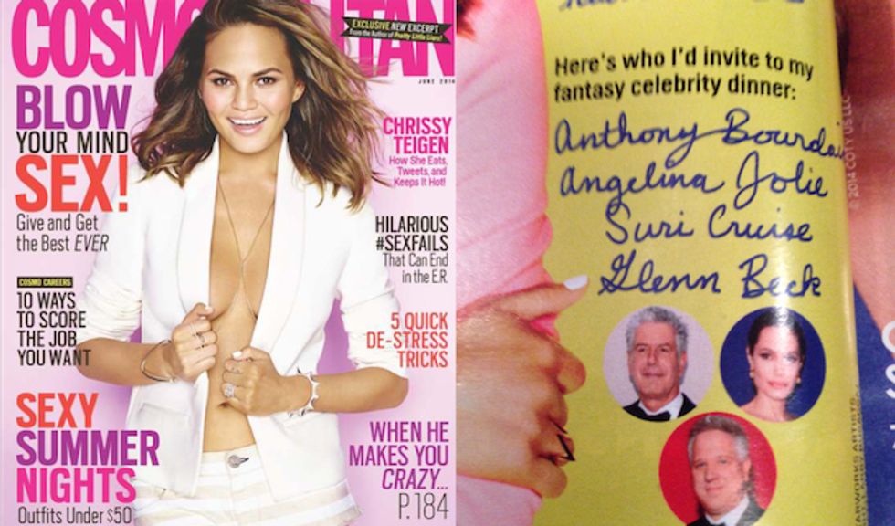 Sports Illustrated swimsuit model Chrissy Teigen graces the June issue of Cosmopolitan magazine, and after running through her diet tricks and her marriage secrets, Teigen dropped a bombshell: She would like to have dinner with Glenn. Yes, that’s right, Teigen listed Glenn as one of the four people she would invite to her “fantasy celebrity dinner” along with chef Anthony Bourdain, actress Angelina Jolie, and Tom Cruz’s 8-year-old daughter Suri. Despite admitting he had no idea who Teigen was before hearing about the Cosmo article earlier today, Glenn obviously had A LOT of fun with the story on radio this morning.