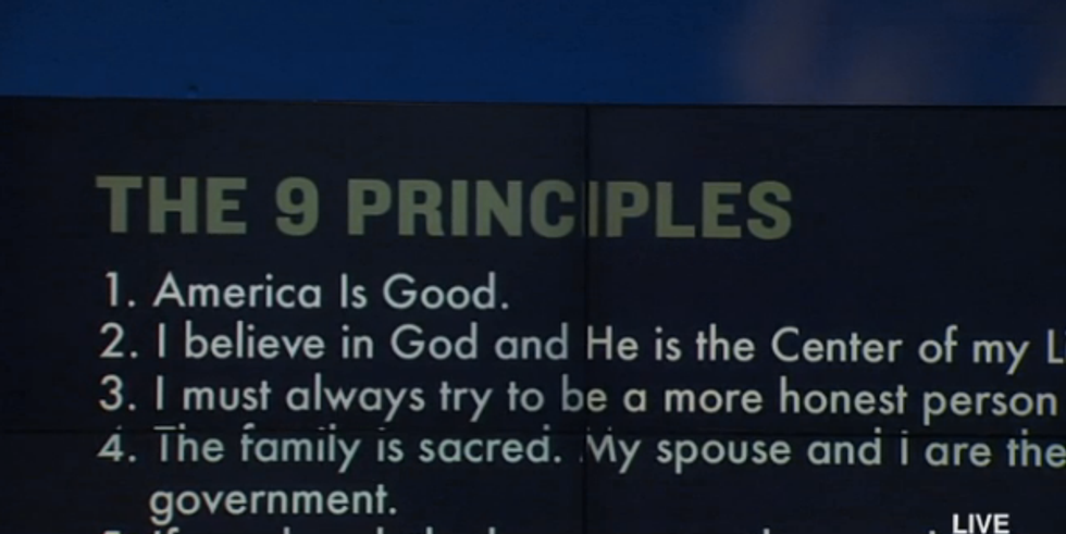 “We have let go of our principles and our values. We don't even know what they are anymore. And our civilization is on the brink because our culture is out of whack because we don't have principles and values,” Glenn said. “And that was the 9/12 Project – the nine principles and the twelve values. What are they? Tea Party, you want to know who you are? You want to know if you stand with me, and if I stand with you, and if you should stand with each other, ask yourself: Do I agree with these nine principles and twelve values?”