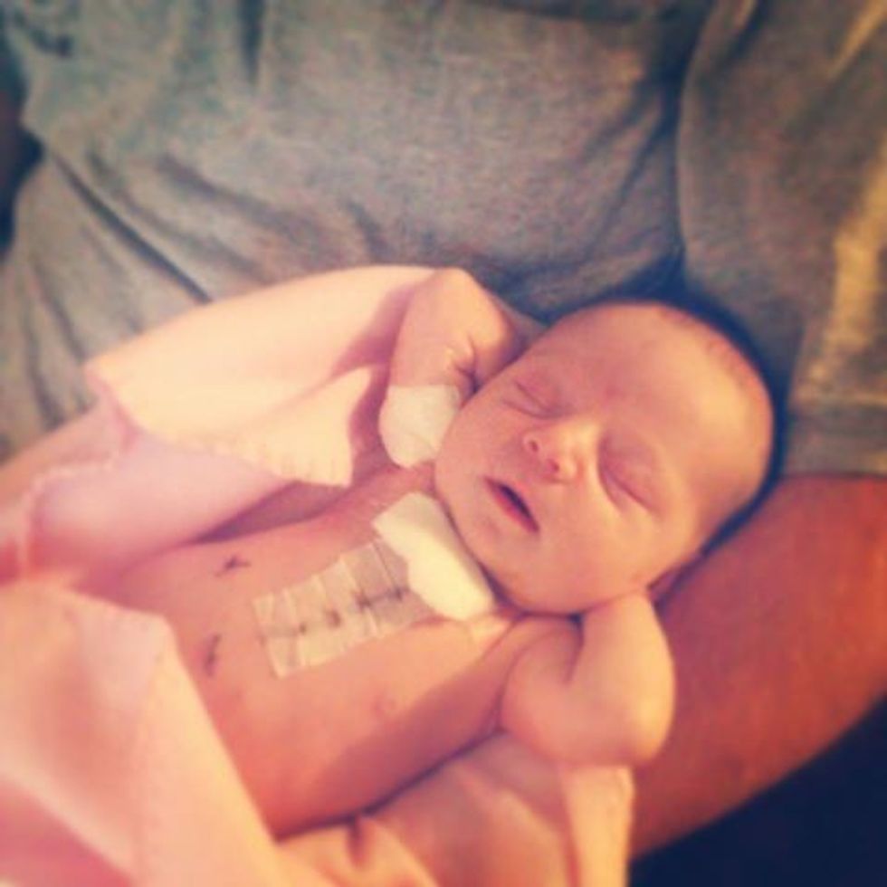“This is my son, Jase, only a few short days after a complicated open heart procedure performed shortly after his birth. From the moment he arrived he was suffering and tense, this was the first moment that he truly relaxed having no more hoses or wires or tubes. It was in this moment I felt that all of my prayers had been heard. I have many more pictures from before the surgery and since, but none had the power of this one.”