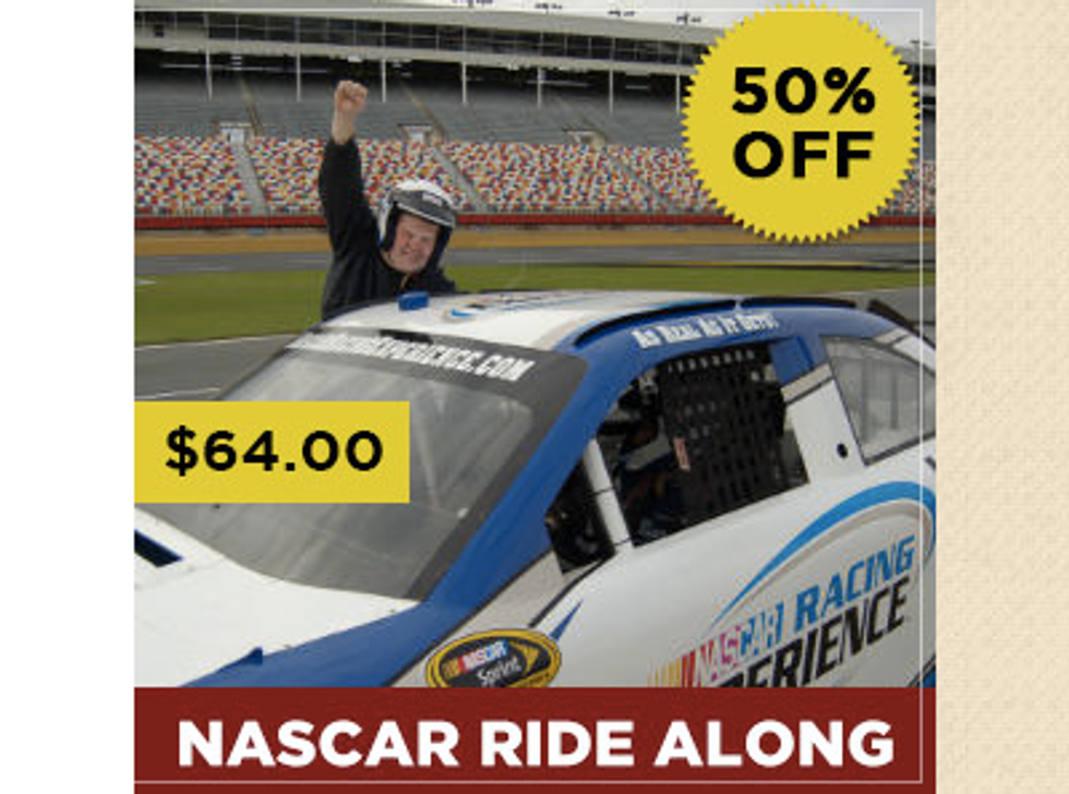 Imagine getting behind the wheel of a real NASCAR race car and cruising the tracks pros use! With today's deal, you'll be able to find out what it feels like to hit top speeds from the driver's seat! Experience an unforgettable adrenaline rush―passing is allowed!
