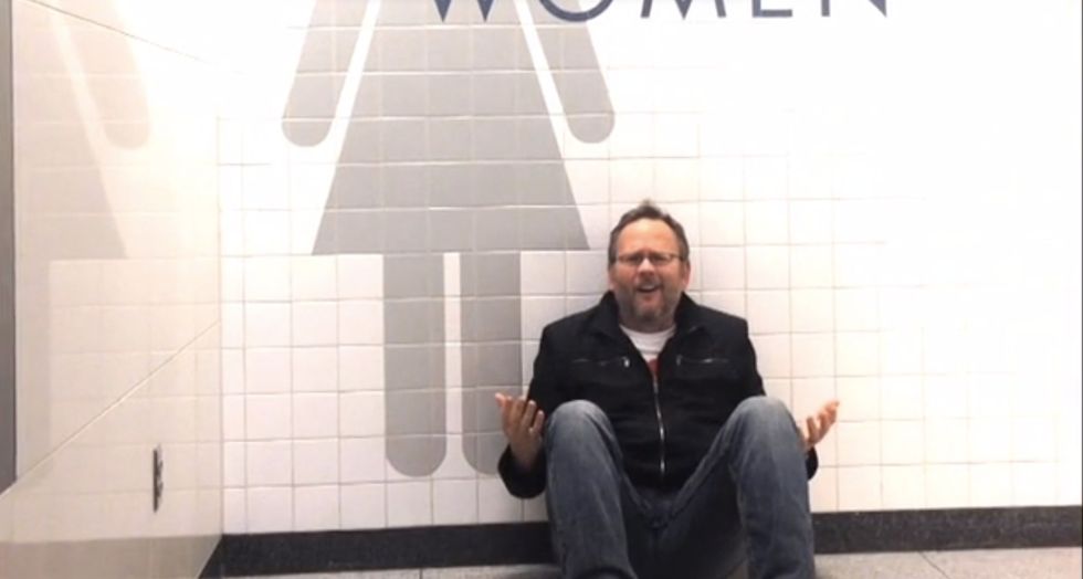 Richard Dunn was stranded in the Las Vegas airport. Alone. If you've ever been there, you know it can be pretty much the worst place on Earth. He could've been pissed, surfed the web, or hopped in a cab back to The Strip to waste away his time gambling and drinking. But instead he channeled his creative energy and did the greatest thing ever: shoot an absurd music video of Celine Dion’s 1996 cover of “All By Myself.”