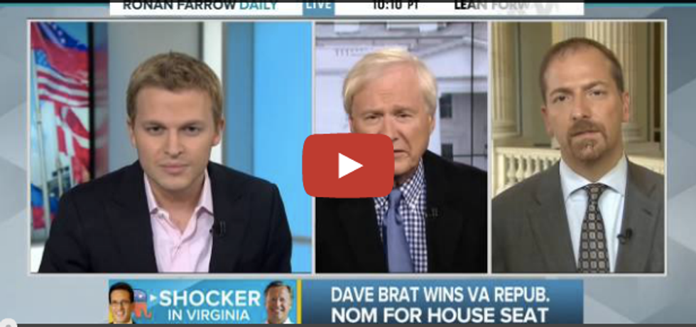 Resident Obama lapdog Chris Matthews offered a curious defense of Virginia congressional candidate Dave Brat and the Tea Party in general during an appearance on MSNBC’s Ronan Farrow Daily on Wednesday.