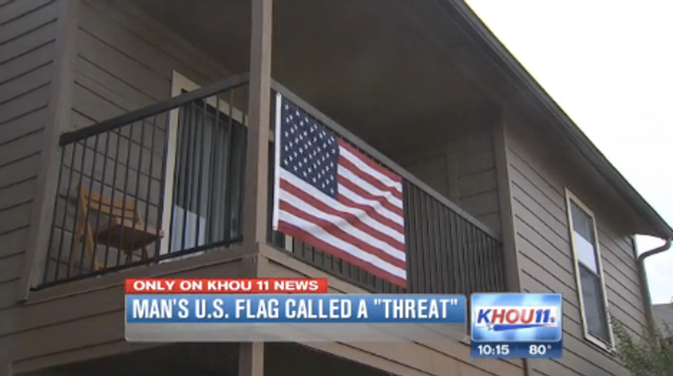 According to KHOU-TV, Tran moved in to an apartment at the Lodge on El Dorado apartment complex just a few days ago. He proudly hung his American flag outside, but was soon asked to take it down.