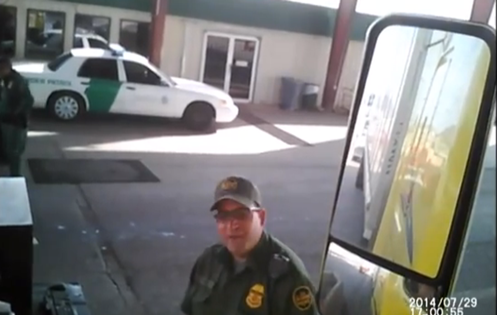 The man behind the wheel of the truck is a driver named Travis Pope who was on Interstate 10 in Sierra Bianca, Texas, when he spoke to the border agent. Pope filmed the conversation using a pair of Icam glasses, and, according to TheBlaze, the agent was unaware he was on film.