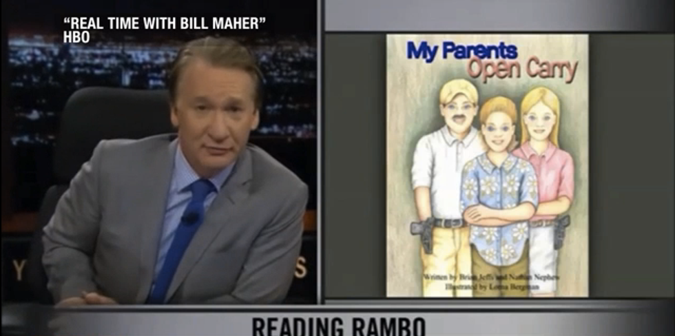 Ironically, the My Parents Open Carry is not actually a new book. Jeffs and Nephew explained they came up with the idea for the book a few years ago, and it was published soon after. It had remained relatively under the radar until Maher stumbled across it last week and chose to highlight it on his HBO program Real Time with Bill Maher. Colbert followed suit, and the rest is history.