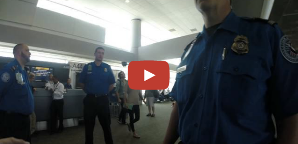 Nygard also filmed his encounter with the TSA agent, which occurred once he exited the place. The agent says they need to re-examine "his body and his bags" immediately, and threatens to call Denver police if he does not comply.