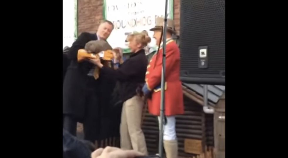 "Scandal number one. Why is the Staten Island zoo giving you a bogus groundhog, naming it Chuck instead of Charlotte? Well, apparently, Chuck bit the mayor at one point, and so they wanted to not use Chuck. Because once you have a taste of the mayor's blood, apparently you just...anyway, so they went for Charlotte, the girlfriend of Chuck, and presented him as Chuck."