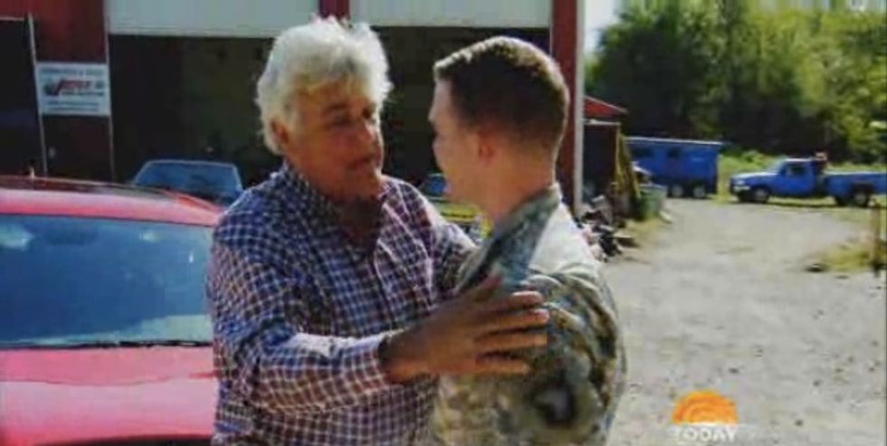 Don't ever say Jay Leno isn't a class act. On the Today Show, the former late night talk show host got to combine two of his greatest passions: driving cars and recognizing America's amazing veterans.