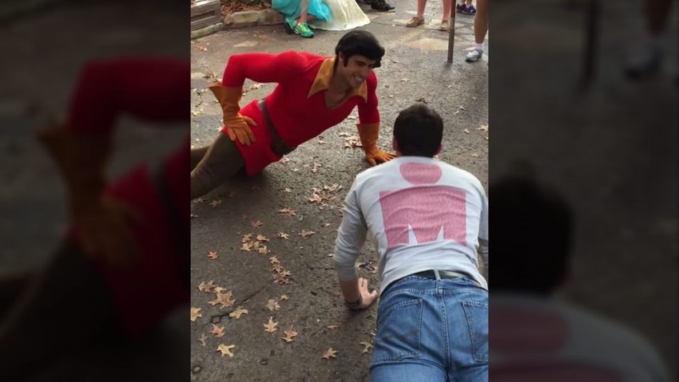And here's a little bit of magic that is now making its way across the internet. During a recent visit, one Disney World visitor thought it would be a good idea to challenge the 'Beauty and the Beast' villain Gaston to a push-up contest. Well, it wasn't.