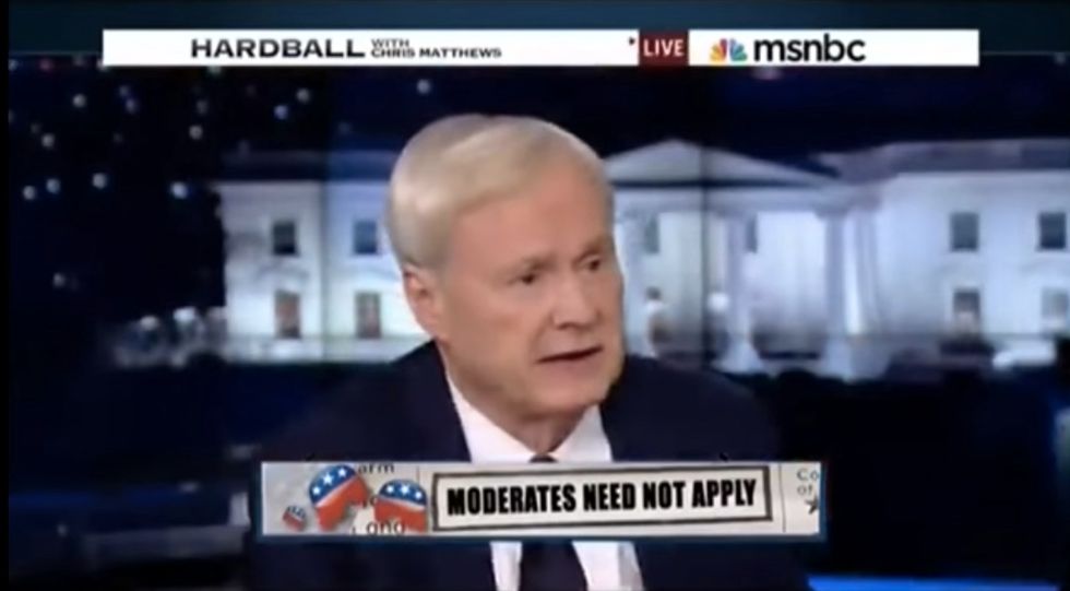 Chris Matthews has a habit of making strange comments when it comes to race. During the Obama's first term, he claimed that he "forgot he was black tonight for an hour" after the State of the Union, implying he thought about President Obama's race for the other 23 hours of the day. He's also tried to redefine the very term of racism so that it applied only to whites (seriously, this happened) and made calling Tea Party members racist a trademark of his TV show. Well, it looks like things aren't going to be changing anytime soon.