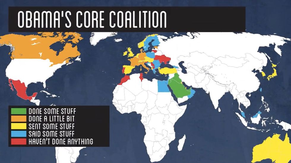 So, you heard we're fighting ISIS, with a giant mega-coalition. We're sure not going-it-alone, I tellya. What is our coalition made up of? Where is the media asking these questions anyway? Watch in horror.