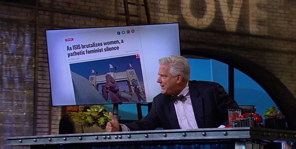 On last night's TV show, Glenn delivered a fiery monologue intended to wake up people - especially Christians - who are outraged over "persecution" happening in America but stay silent on the genocide taking place in the Middle East. Why do people organize in support of Chick-Fil-A when they come under fire from the left, but don't stand up for the Christians being beheaded by the Islamic State? Is the so-called "gender pay gap" really a "war on women", or is it the women forced to cover themselves head-to-toe every time they leave the house?