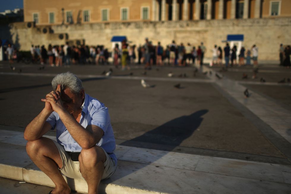 Featured Image: ATHENS, GREECE - JULY 13: A man sits alone with his thoughts as protesters gather outside the Greek parliament to demonstrate against austerity after an agreement for a third bailout with eurozone leaders on July 13, 2015 in Athens, Greece. The bailout is conditional on Greece passing agreed reforms in parliament by Wednesday which includes streamlining pensions and rasing more raise tax revenue. (Photo by Christopher Furlong/Getty Images)