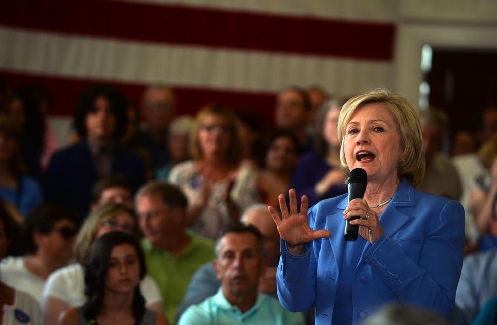 Featured Image: DOVER, NH - JULY 16: Democratic Presidential candidate Hillary Clinton speaks during a town hall event at Dover City Hall July 16, 2015 in Dover, New Hampshire. Clinton spoke about how to build an economy that will boost the middle class. (Photo by Darren McCollester/Getty Images)