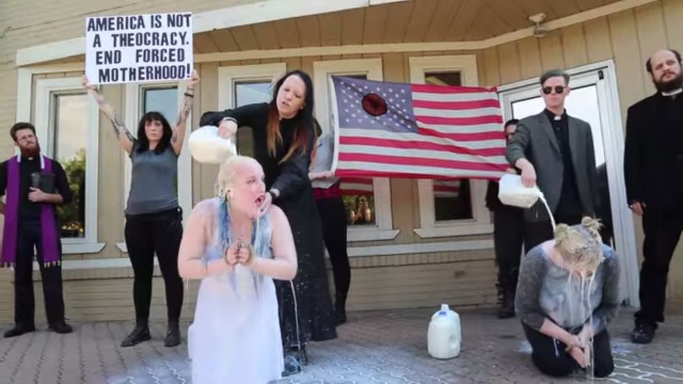 GLENN: I saw this story with Planned Parenthood and these people who were standing up and protesting in favor of abortion. And they're Satanists. And they poured milk over these women. And people are laughing this off as, you know, something that's just laughable, I guess.