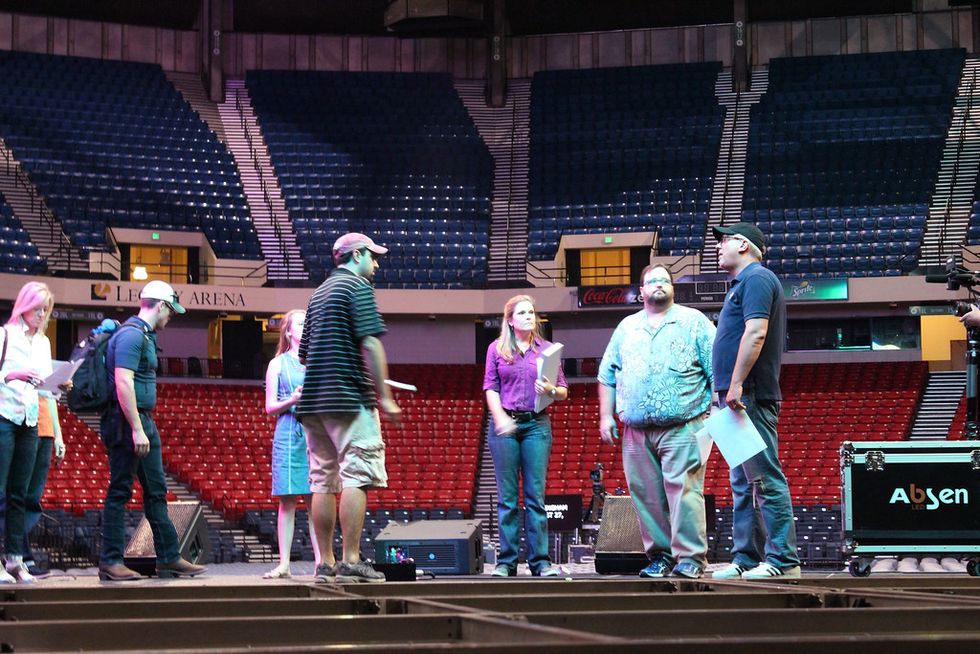IMG_5205-XL Glenn stands on the stage of Legacy Arena at the BJCC during a walk-through with his staff in Birmingham, AL, Thursday 8/27. Photo by Amber Fisher.
