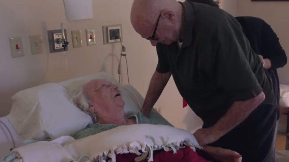 In this absolutely heart-melting video, an elderly man sings to his wife who is apparently living out her final days at a hospice center. Granddaughter, Erin Solari, who posted the video, wrote: