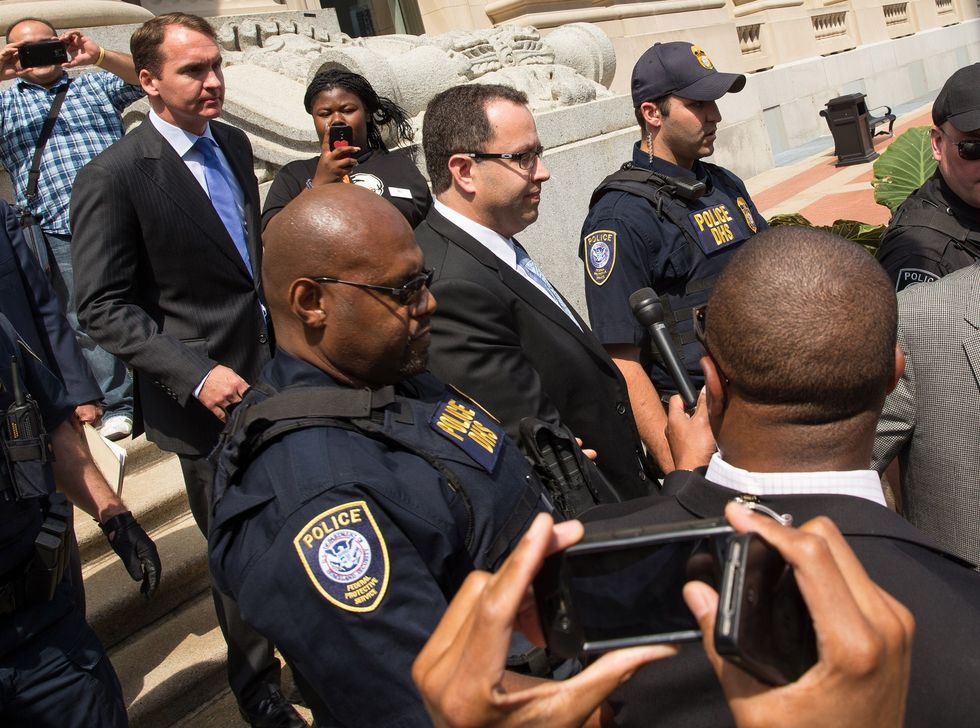 Featured Image: INDIANAPOLIS, IN: Jared Fogle, center, walks out of the courthouse on August 19, 2015 in Indianapolis, Indiana. (Photo by Joey Foley/Getty Images)