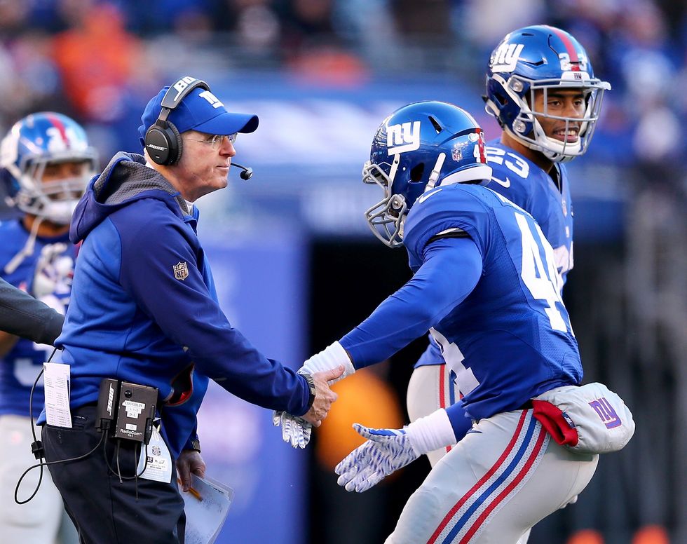 Featured Image: Head coach Tom Coughlin of the New York Giants congratulates Andre Williams #44 as he comes back to the bench against the Philadelphia Eagles at MetLife Stadium on January 3, 2016 in East Rutherford, New Jersey.The Philadelphia Eagles defeated the New York Giants 35-30. (Photo by Elsa/Getty Images)