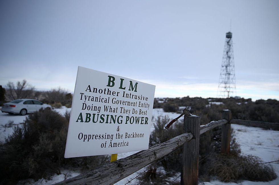 Featured Image: A sign is posted on a fence at the Malheur National Wildlife Refuge Headquarters on January 5, 2016 near Burns, Oregon. An armed anti-government militia group continues to occupy the Malheur National Wildlife Headquarters as they protest the jailing of two ranchers for arson. (Photo by Justin Sullivan/Getty Images)