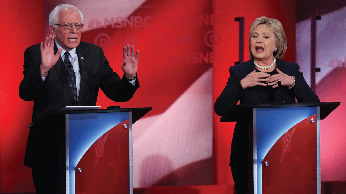 Featured Image: Democratic presidential candidates former Secretary of State Hillary Clinton and U.S. Sen. Bernie Sanders (I-VT) during their MSNBC Democratic Candidates Debate at the University of New Hampshire on February 4, 2016 in Durham, New Hampshire. This is the final debate for the Democratic candidates before the New Hampshire primaries. (Photo by Justin Sullivan/Getty Images)
