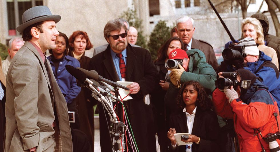 Featured Image: Matt Drudge speaks to reporters outside the U.S. District Courthouse in Washington, DC. (Photo Credit: JAMAL A. WILSON/AFP/Getty Images)