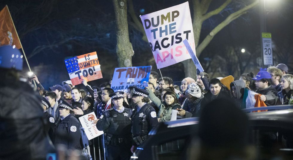 Featured Image: Demonstrators taunt supporters of Republican presidential candidate Donald Trump as they leave a rally at the University of Illinois at Chicago which was postponed on March 11, 2016 in Chicago, Illinois. Organizers postponed the rally citing safety reasons after hundreds of demonstrators were ticketed for the event. (Photo by Scott Olson/Getty Images)