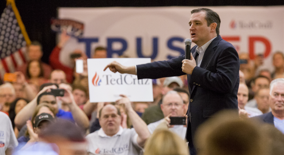 Featured Image: Republican presidential candidate, Sen. Ted Cruz (R-TX) addresses supporters during a campaign rally at the Adams Mark Hotel on March 12, 2016 in Kansas City, Missouri. The candidates continue to campaign before the March 15th Missouri primary. (Photo by Kyle Rivas/Getty Images)