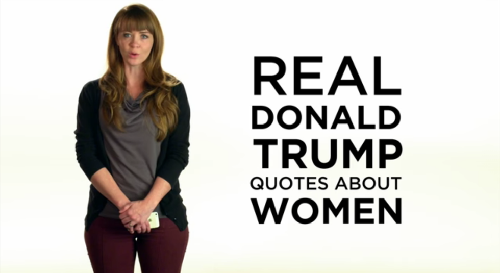 Conservative anti-Trump group Our Principles PAC paid for the ad, which features actresses reading Trump quotes about women, verbatim. "A person who is very flat-chested is very hard to be a ten," Trump said in February. "There was blood coming out of her eyes. Blood coming out of her wherever," he said in August about Megyn Kelly.