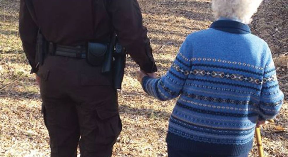 A group of officers were able to track Roberta down, but knowing she has dementia, the cops pretended they were out for a walk, too.